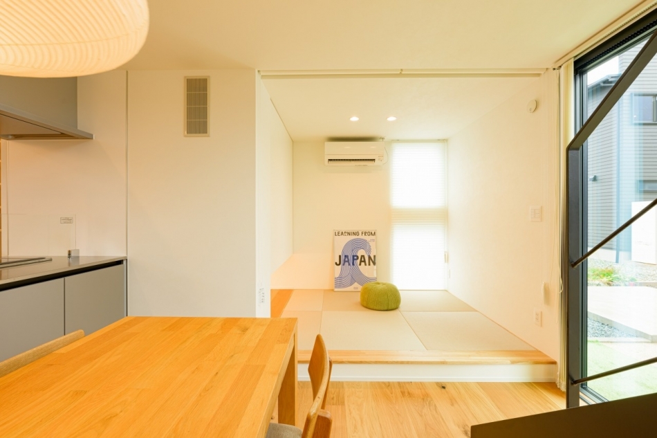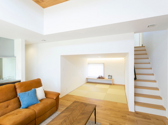 愛車を眺めながら過ごせるビルトインガレージ。趣味に没頭できる大人の隠れ家のような住まいです。